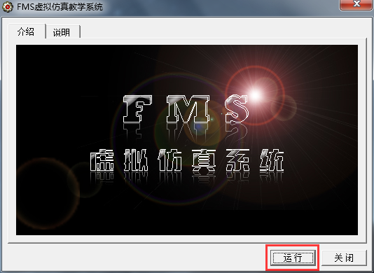 打开exe后跳出运行界面,点击运行按钮即进入FMS虚拟仿真系统。如图1-2所示。