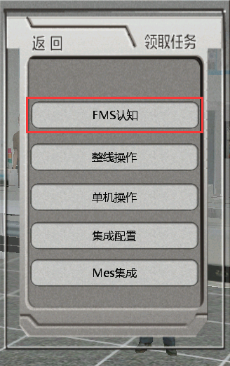 1、点击NPC,弹出任务窗口,点击FMS认知按钮,接受认知任务。若不想领取任务则点击左上角的返回按钮。具体如图2-2所示。