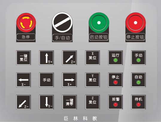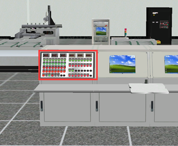 先点击气泵开关,气泵运行灯亮,再点击液压开关,液压运行灯亮。之后一次点击车床急停、加工中心急停、雕铣机急停、检测站急停、装配站急停、传输线急停、机器人急停、立体仓库急停等8个急停按钮。对应的停止灯会灭,同时系统报警蜂鸣灯停止闪烁。