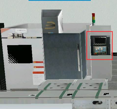 行走到雕铣机前面,点击雕铣机点击如图框选处,弹出雕铣机操作界面。如图2-23、2-24所示。